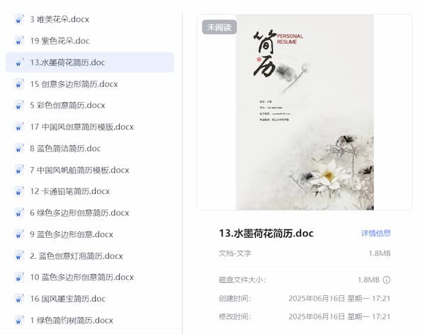 【简历模板】19套复试简历模板【封面+简历+自荐信+封底】·夸克分享