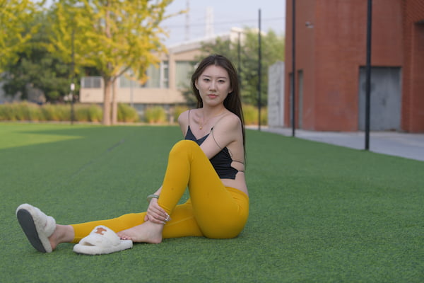 【4K套图系列】跟拍黄色瑜伽裤美女
