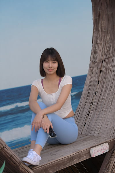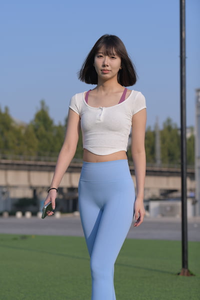 【4K套图系列】跟拍穿蓝色瑜伽服天然美女